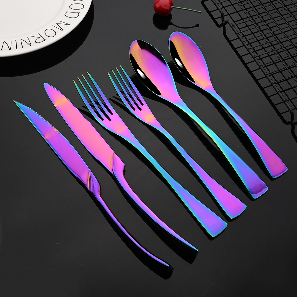 Rainbow Stainless Steel Cutlery Set – 6-Piece Modern Flatware Collection