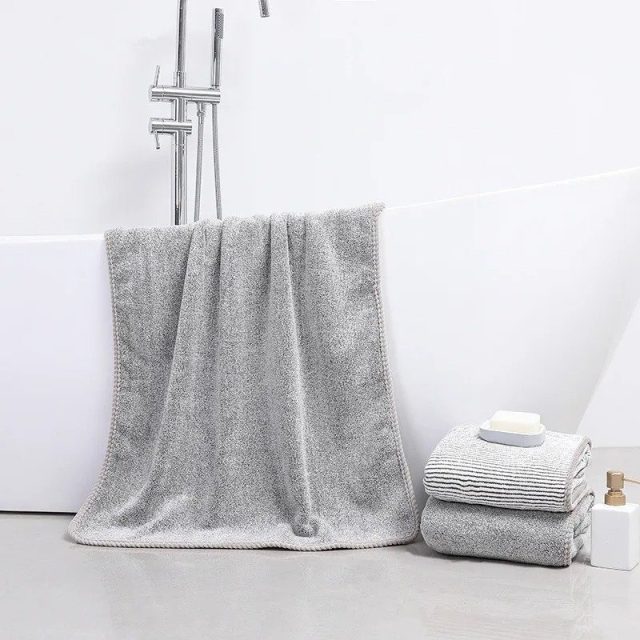 The bamboo charcoal fiber blend is what truly sets this towel apart. It naturally supports antibacterial freshness while staying soft and breathable. Combined with a quick-dry structure, it helps reduce damp odors and keeps your towel feeling cleaner for longer. The clean, solid design fits effortlessly into any bathroom style.