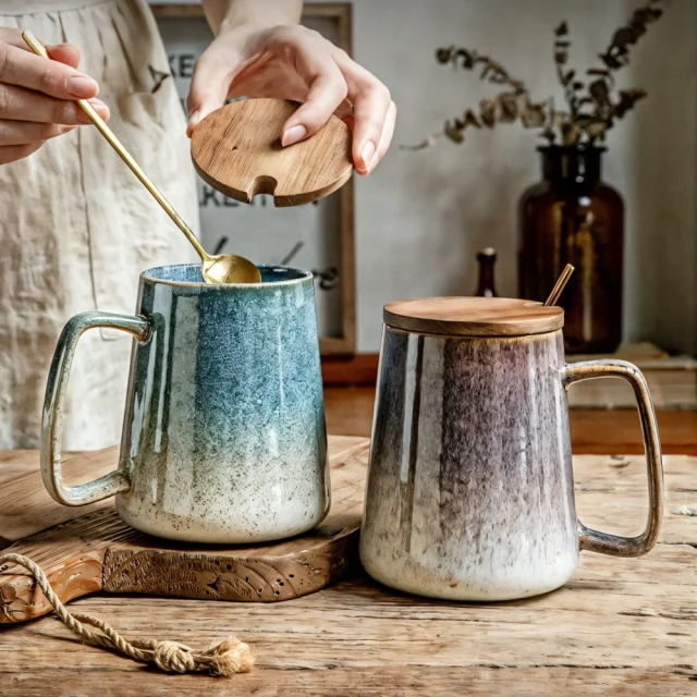 Enjoy your favorite drinks in a mug that feels as good as it looks. This large retro ceramic mug blends European-inspired elegance with everyday practicality. With its smooth porcelain finish, comfortable handgrip, and matching lid and spoon, it turns ordinary coffee or tea moments into something special. Whether you’re starting your morning, taking a break at the office, or winding down in the evening, this mug adds warmth and charm to your routine.