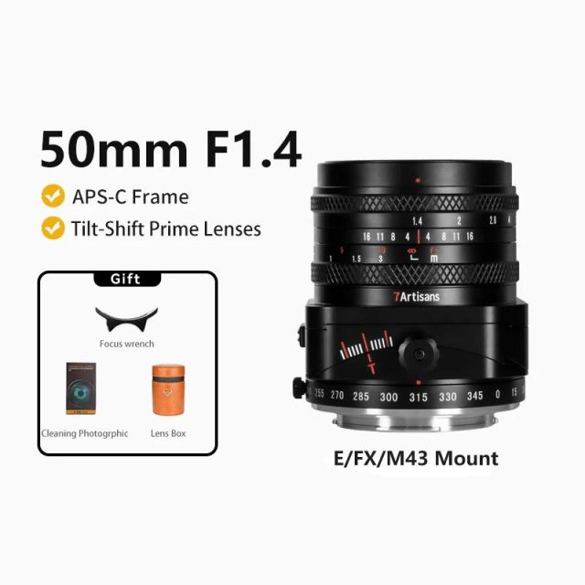 7artisans 50mm F1.4 Tilt-Shift Manual Lens Large Aperture APS-C Lens with 2-in-1 For Sony E ZVE10 FUJIFX X-T1 Micro 4/3 E-PL1