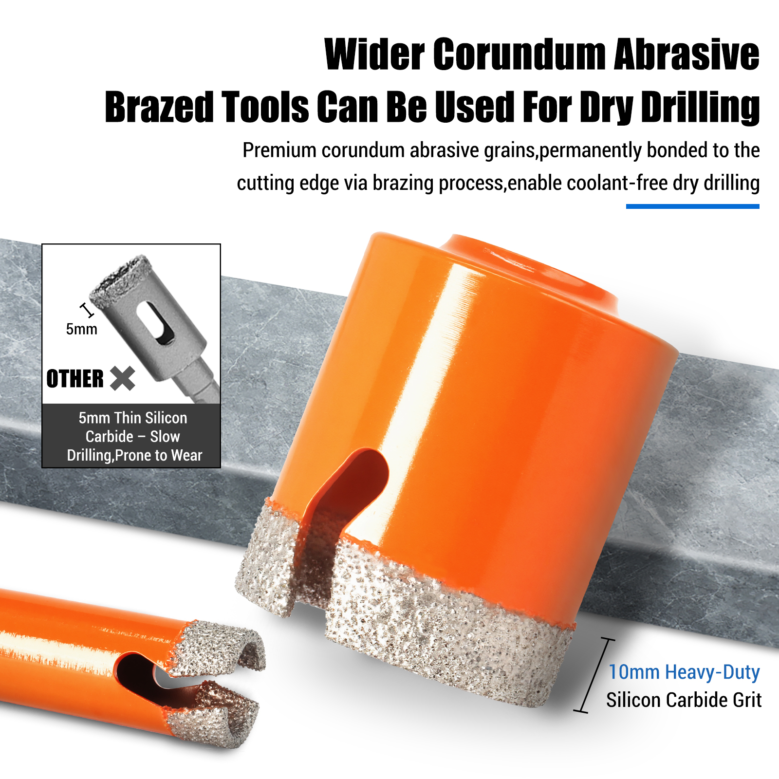 Built using premium corundum abrasive grains, each bit ensures high-speed drilling, extended lifespan, and smooth cutting edges — even on the hardest materials. The chip flute design allows fast debris removal, reducing friction and heat buildup, so you can work efficiently in both wet and dry conditions.