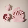 Introducing an all-in-one silicone feeding set designed to make every meal smoother for both babies and parents. This complete 8-piece set includes a suction plate, suction bowl, cup, utensils, and more—everything your little one needs to enjoy safe, independent eating. Made from high-quality, food-grade silicone, the set is soft to the touch, gentle on gums, and built to withstand daily use. It’s free from BPA, PVC, phthalates, latex, nitrosamine, and other harmful chemicals, making it a trustworthy choice for your child’s everyday meals.