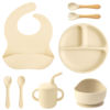 This thoughtfully curated feeding set includes a suction plate, straw cup, waterproof bib, spoon, fork, and other essentials to make every meal easier. The strong suction base keeps the plate securely in place — no more flying dishes or messy spills! The flexible waterproof bib catches food drips and crumbs, while the easy-grip utensils are perfectly sized for tiny hands still learning to eat independently. The straw cup promotes healthy sipping habits and transitions your baby away from bottles.