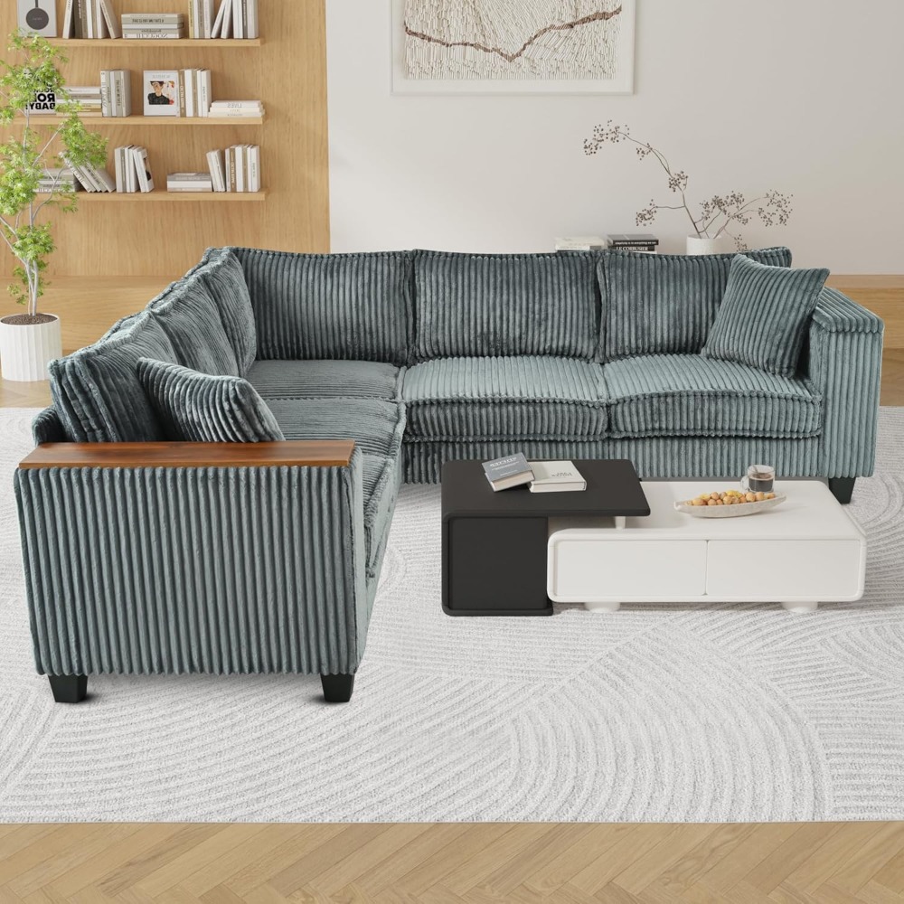 97” Oversized L-Shaped Corduroy Sectional Sofa with Storage Armrests & Pillows
