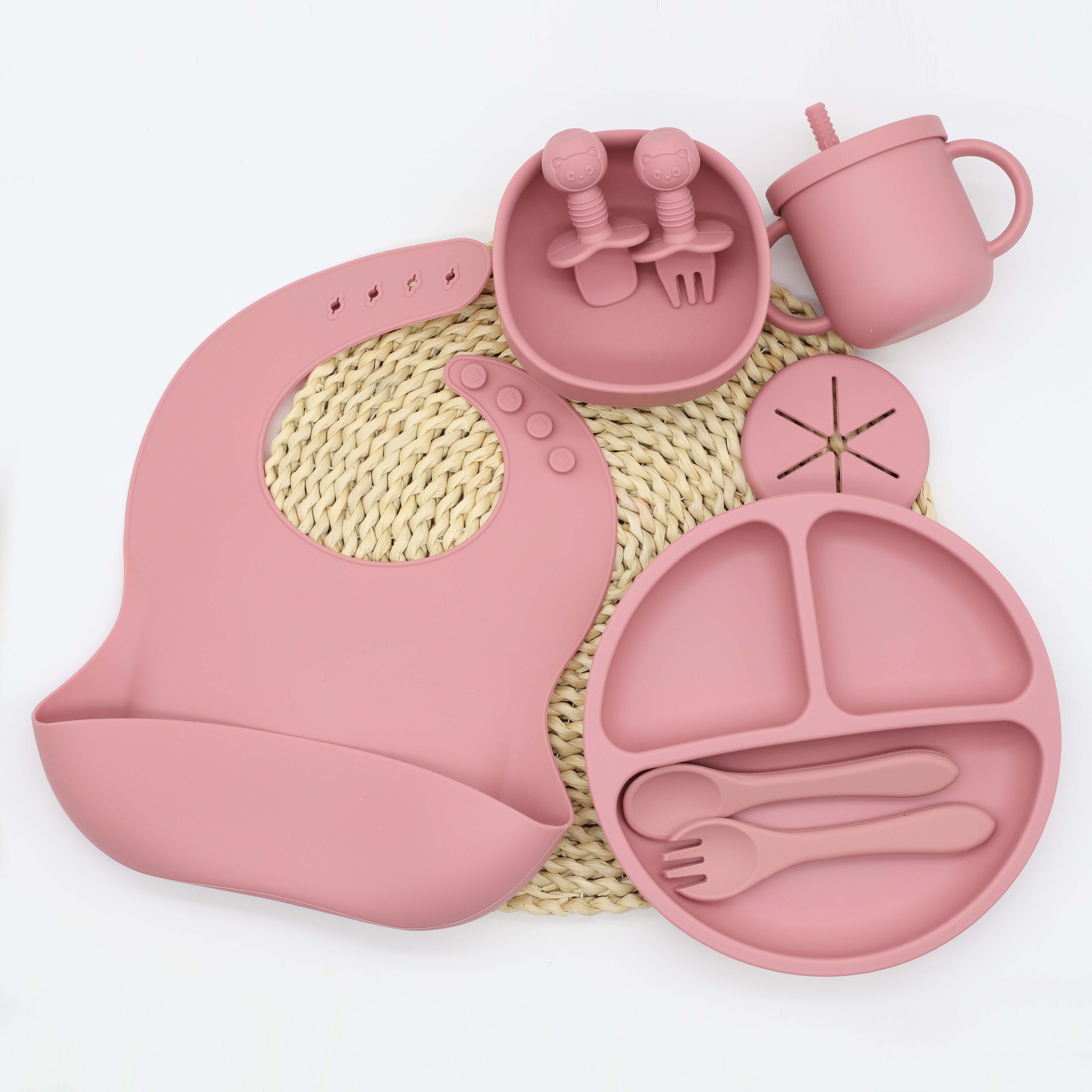 Say goodbye to mealtime messes and hello to happy, stress-free feeding! Our 9pcs Silicone Baby Feeding Set is designed to make your baby’s first meals enjoyable, safe, and simple for both you and your little one. Made from premium food-grade silicone, this set includes everything your baby needs to eat independently—from a bib that catches spills to suction-based bowls and plates that stay put. Soft to the touch, durable, and easy to clean, it’s the perfect partner for your baby’s growing appetite.