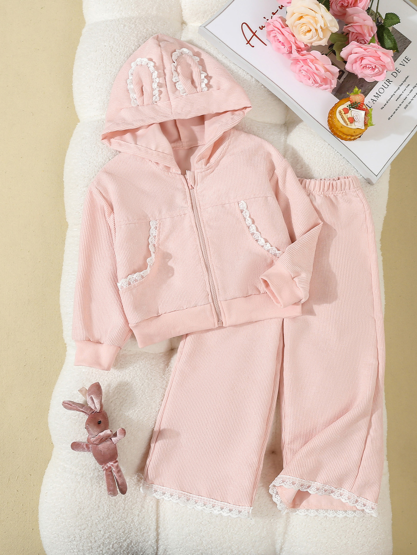 Wrap your little girl in warmth and sweetness this season with this adorable two-piece corduroy set. Perfect for autumn and winter, this outfit brings together a soft, pink hooded coat and matching straight-leg trousers to create a look that’s both cozy and stylish. Designed with attention to detail, the outfit offers comfort for everyday play and cuteness that turns heads wherever she goes.