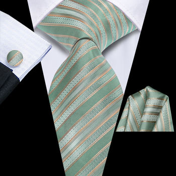 Striped Light Green Silk Tie for Men – Formal Wedding & Business Necktie