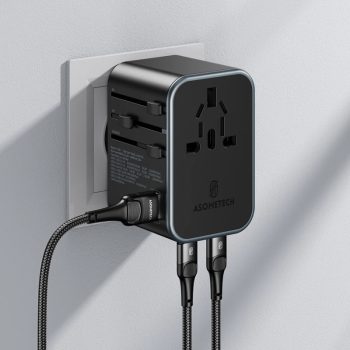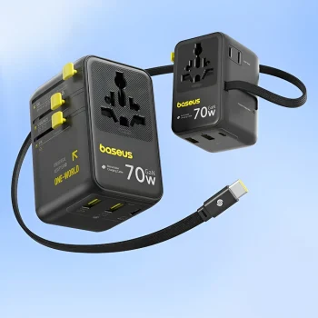 Universal 70W Travel Adapter with Retractable Cable and Fast Charging