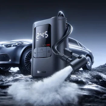 2-in-1 Portable Car Air Compressor with Power Bank & Flashlight
