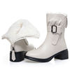 Winter streets can be unpredictable. That’s why these boots feature a durable non-slip rubber outsole that delivers reliable traction on wet or icy surfaces. Walk with confidence knowing each step feels stable and secure. The comfortable square mid heel, measuring approximately 1.2–2 inches, gives you a subtle lift while maintaining balance and all-day comfort.
