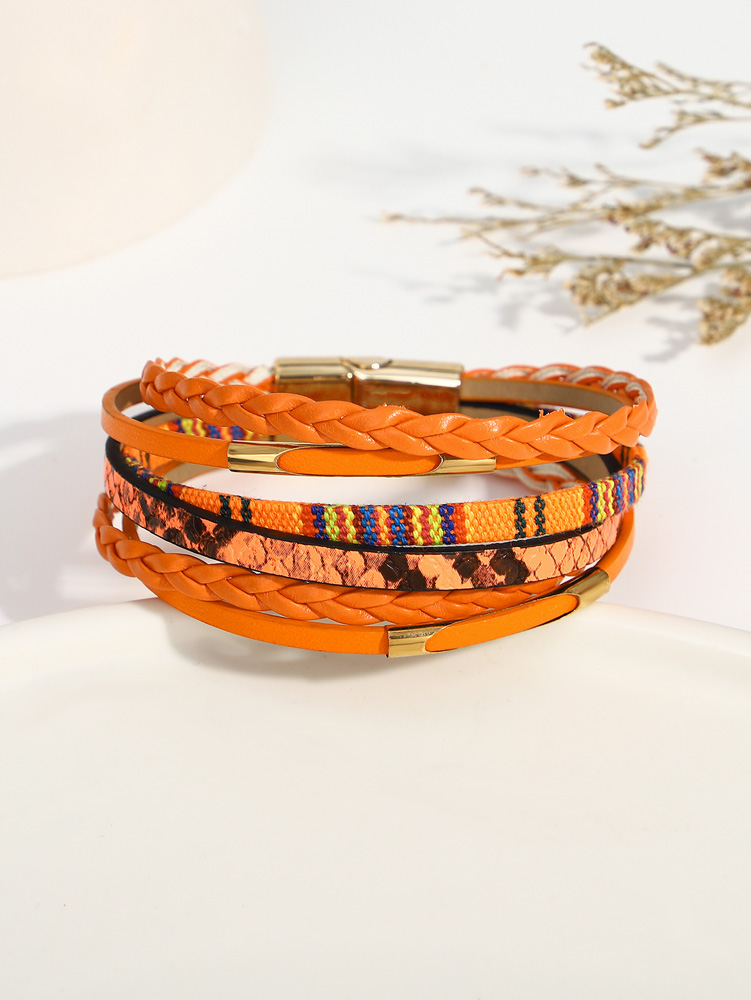 This bracelet features an intricately braided multilayer wrap with a striking snake pattern — a symbol of transformation and power. Its handwoven leather design not only feels premium but also tells a story of careful craftsmanship. Each strand is thoughtfully designed to create a layered, textured look that stands out from ordinary accessories. The adjustable fit ensures it sits comfortably on your wrist while maintaining its bold character.