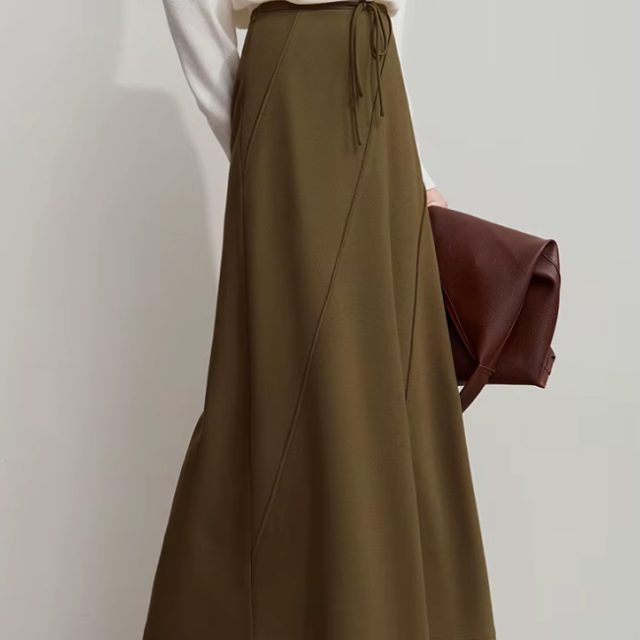 Step into the new season with a clean, modern look that feels as good as it looks. This autumn-inspired long A-line skirt is designed for women who love simple elegance with a touch of character. The soft blended fabric drapes beautifully, giving you a relaxed silhouette that flows with every step. The unique strap-style detail paired with a lace-up drawstring adds just the right amount of personality without overwhelming your outfit.