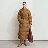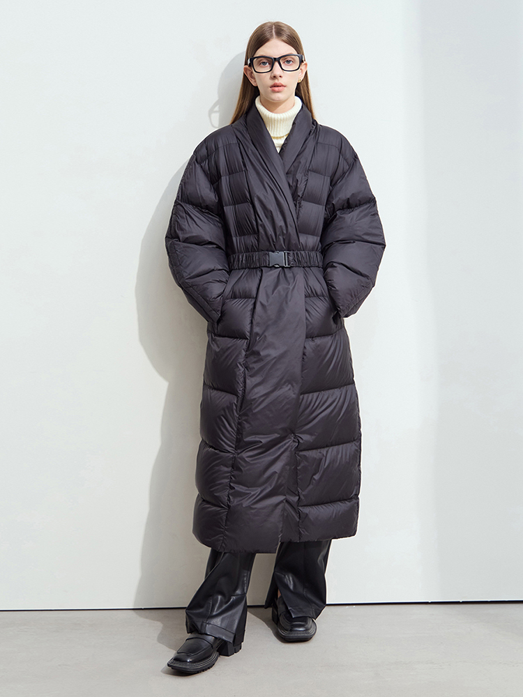 This jacket stands out because it combines high-performance insulation with a modern, structured silhouette. Filled with 85% white duck down, it delivers impressive warmth while staying lightweight and breathable. The wide-waisted design and matching belt allow you to adjust the fit, so you can highlight your shape while staying protected from the cold. The solid color and minimal details make it easy to pair with office outfits, dresses, jeans, or boots.