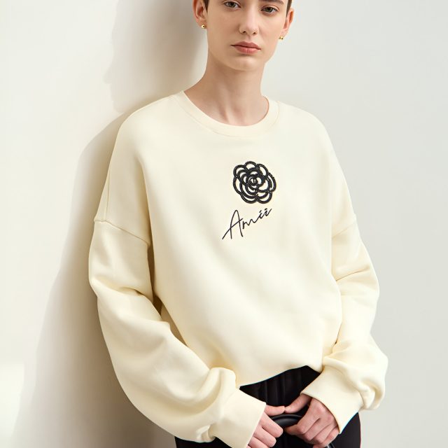 Meet your new favorite autumn layer. This minimalist cotton sweatshirt blends soft comfort with a delicate rose embroidery for a look that feels calm, modern, and feminine. The loose fit and drop sleeves create an easy, relaxed silhouette that flatters without trying too hard. It’s designed for women who love simple fashion with a subtle statement, perfect for everyday wear in the cooler seasons.
