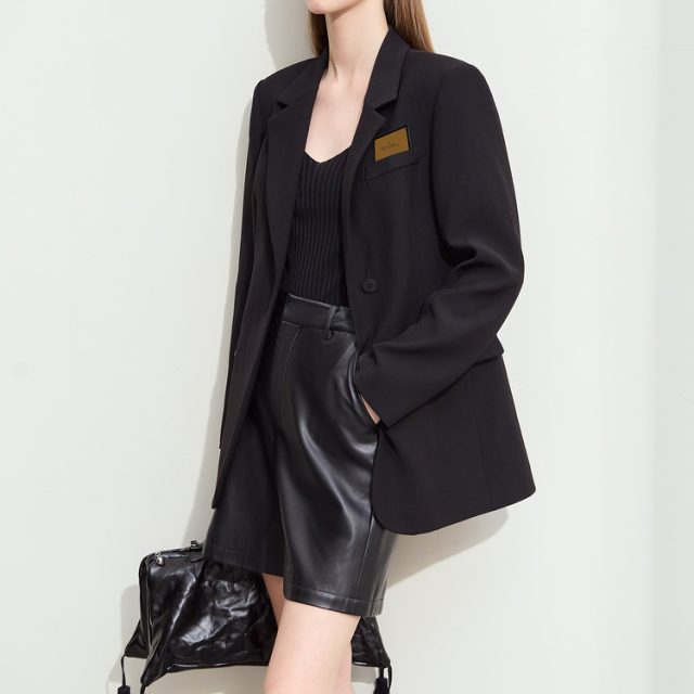 When it comes to style and versatility, this blazer truly stands out. Designed with the office lady in mind, it seamlessly transitions from a professional work environment to after-hours cocktails. The mid-length cut offers just the right amount of coverage while remaining flattering and stylish. The subtle patchwork design provides an extra touch of personality, making this blazer more than just your basic office wear.