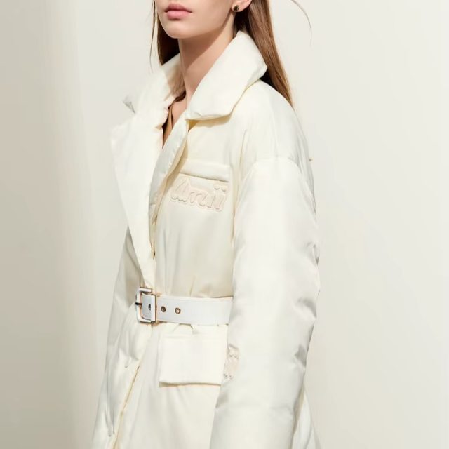 AMII Minimalist 2025 Women's Down Coats Winter New Commuter With Belt Suit Collar Long Jacket Letter Embroidery Badge 12344055