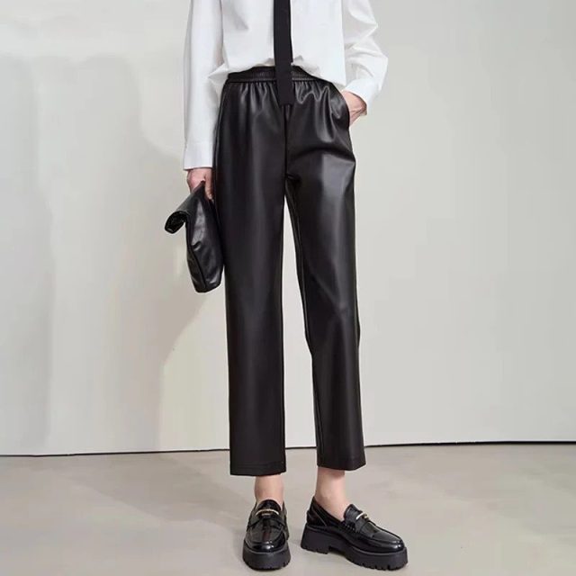 These pants stand out for their balanced mix of structure and comfort. The high-quality faux leather has a soft, polished finish that feels premium while staying lightweight enough for daily wear. The straight-leg cut creates a flattering silhouette without clinging, perfect for a regular fit that suits different body shapes. With a mid-rise elastic waist, you get a secure and comfortable feel all day long, without sacrificing style.