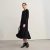 This midi dress is crafted from a smooth knitted fabric blend that feels soft against the skin and provides medium stretch for easy movement. It features long raglan sleeves for a relaxed shoulder fit and an O-neck design for a classic, flattering neckline. The silhouette is loose with a natural waistline, finished with an elegant trumpet hem that falls at mid-calf length, between approximately 36.2 to 40.9 inches depending on size.