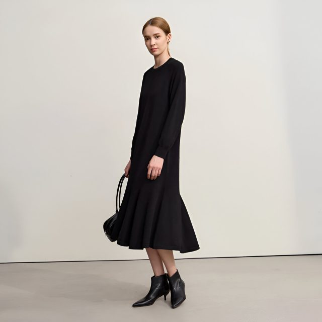 Meet your new cold-season essential: a minimalist midi dress designed to keep you warm, polished, and comfortable all day long. With its clean silhouette and soft knitted fabric, this dress blends casual ease with office-ready elegance. The loose fit drapes beautifully over the body, while the subtle trumpet hem adds movement and a graceful shape as you walk. Whether you are heading to work, meeting friends for coffee, or going out for a relaxed evening dinner, this dress makes getting dressed simple and stylish.