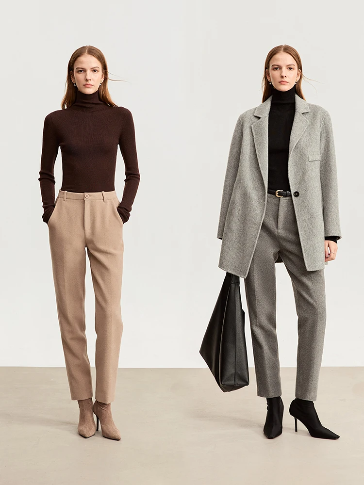 These pants are more than just a wardrobe staple—they are a winter essential that blends style, comfort, and versatility. The soft wool blend keeps you warm on chilly days, while the straight-leg cut allows for easy styling with sweaters, blouses, or tailored jackets.