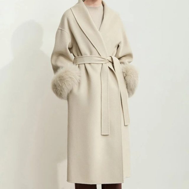 This coat stands out because it blends luxury materials with everyday practicality. The real wool construction offers long-lasting warmth and durability, while the removable fur cuffs give you two looks in one. Its office-ready style makes it perfect for workdays, yet refined enough for dinners, events, or weekend strolls.