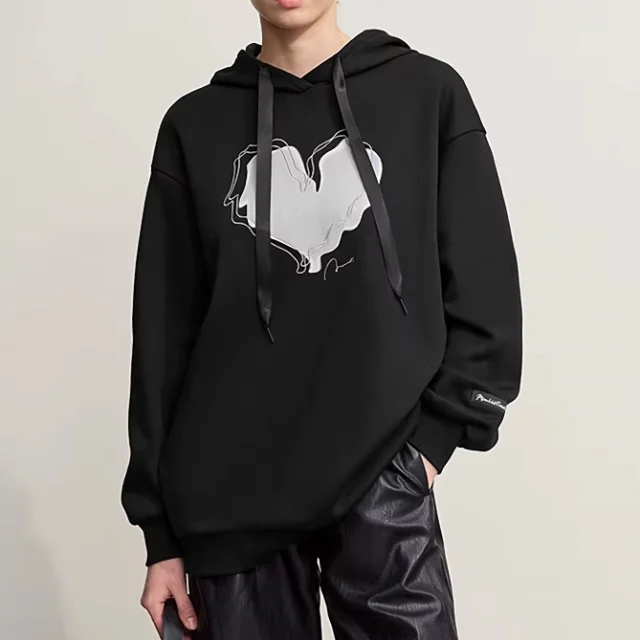 This pullover sweatshirt is made with heavyweight fabric for extra warmth and features a hooded collar, long sleeves, and a relaxed oversized cut. The micro-elastic knit allows slight stretch for easy movement, while the drop-shoulder sleeves deliver a laid-back, modern look. The printed design adds a touch of personality without being too loud, perfect for everyday wear.