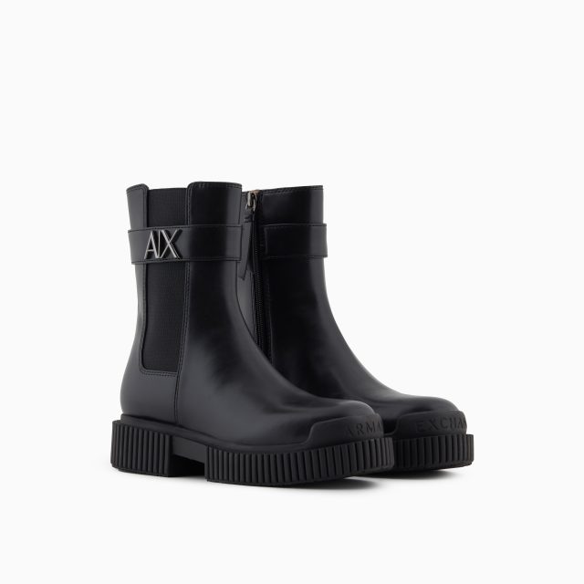 These ARMANI EXCHANGE Women’s Black Low Boots are more than just a pair of shoes—they are an investment in both style and comfort. Designed with a modern aesthetic, they feature a streamlined silhouette that looks great with everything from leggings and skirts to jeans and dresses. The subtle yet distinctive metallic AX logo is a statement of style, while the sculpted rubber sole gives these boots a bold, contemporary look.