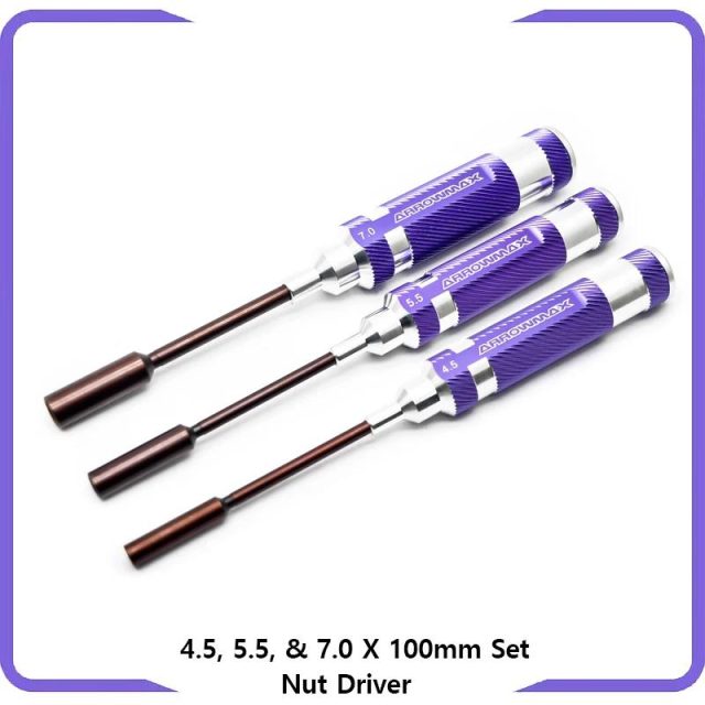 ARROWMAX Nut Driver Screwdriver Set 4.5, 5.5, 7.0 X 100mm Purple Hand Tools for RC Tool