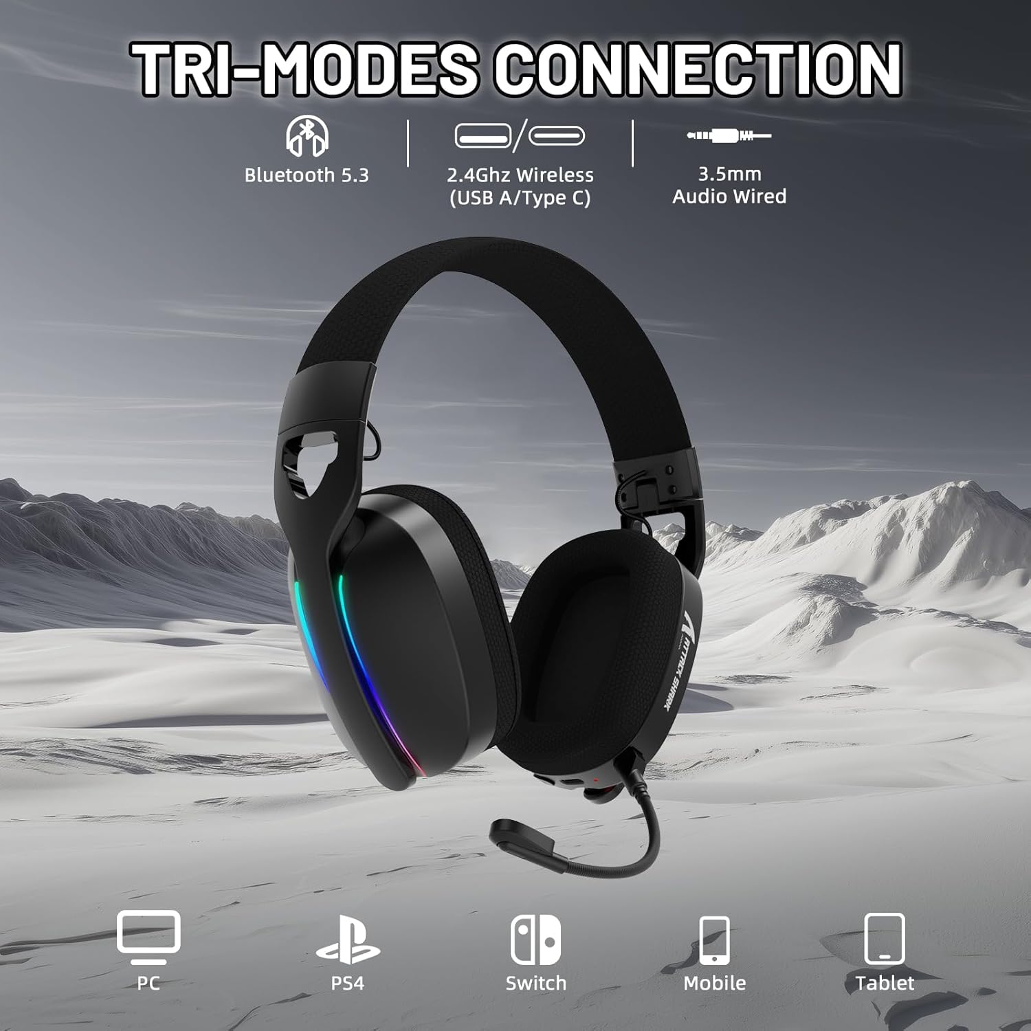 Step into every battle, race, and adventure with a headset built to heighten your senses. This ultralight wireless gaming headset combines 2.4G, Bluetooth 5.3, and 3.5 mm wired support, giving you the freedom to connect to almost any device. Whether you’re on PC, console, tablet, or phone, you can count on rich 7.2 surround sound that pulls you right into the center of the action.