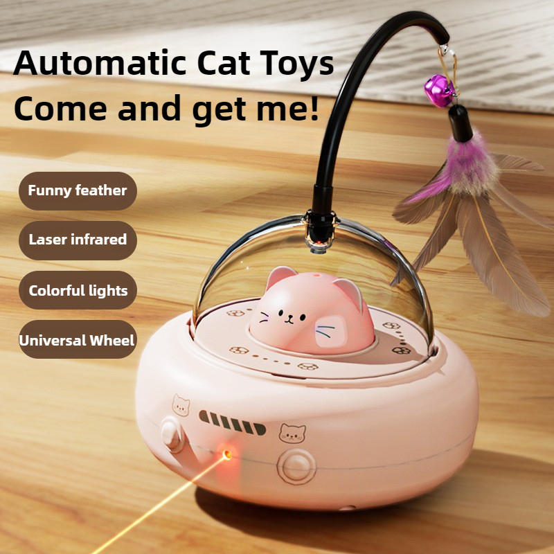 Automatic Smart Cat Toy with Feather Teaser, Bell & LED Lights