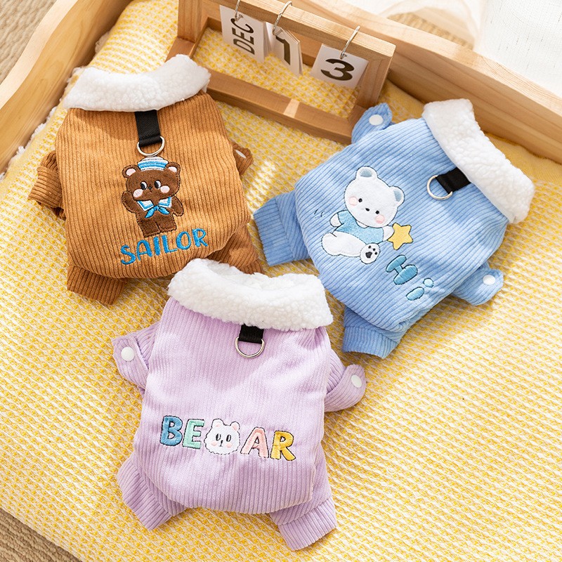 Autumn and Winter Pet Corduroy Jacket Embroidered Traction Four Legged Coat Small and Medium Sized Dog Teddy Pet Clothes