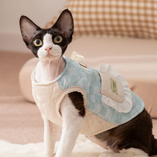 What makes this coat special is its balance of function and fashion. The plaid patchwork design stands out while remaining timeless, and the vest-style cut allows quick dressing with minimal fuss. It’s a practical choice for pets who don’t enjoy bulky clothing.