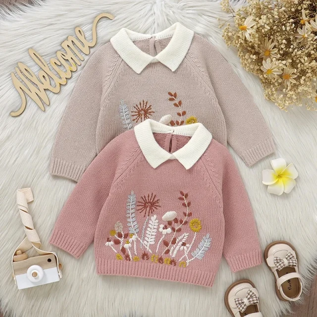 Floral Knit Baby Sweater – Cozy Long Sleeve Pullover for Girls & Boys