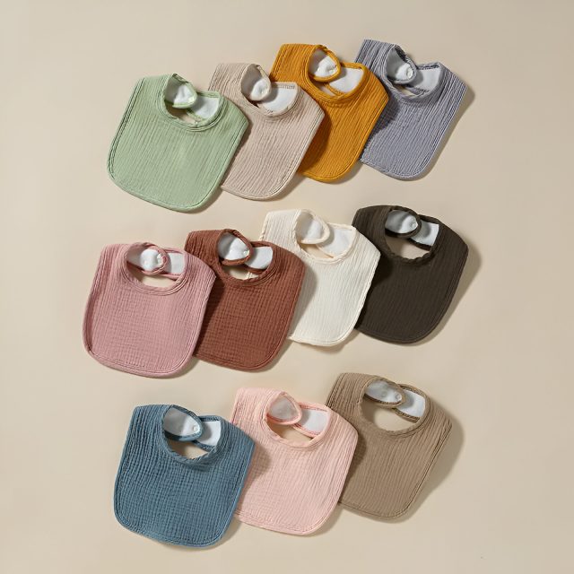 Crafted with multiple layers of thickened cotton, our bib offers superior absorbency without feeling heavy. The lightweight gauze material allows air to circulate freely, ensuring your baby stays cool and comfortable throughout the day. The soft edges are gentle on sensitive skin, while the solid color design makes it easy to match with any outfit — perfect for baby boys and girls alike.