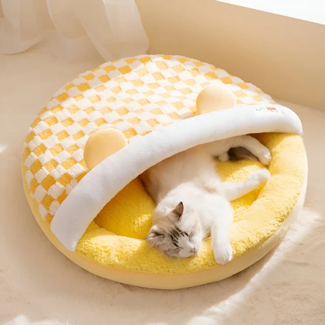 Unlike ordinary pet beds, this design combines warmth, breathability, and style in one. The half-enclosed structure keeps pets feeling safe without closing them off completely, making it especially appealing for pets that love security but dislike being fully hidden. With its chic checkerboard pattern, it’s not just a pet bed—it’s a piece of home décor.