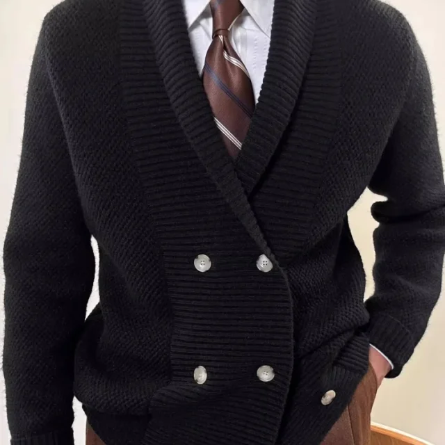 Step into cold weather with confidence wearing this heavy knit double-breasted cardigan jacket for men. Designed in a timeless England style, this piece blends classic fashion with everyday comfort. The structured knit gives you the warmth you need for chilly days while keeping your look clean, sharp, and effortless. With its rich green tone and V-neck design, it adds instant character to any outfit without feeling overdone.