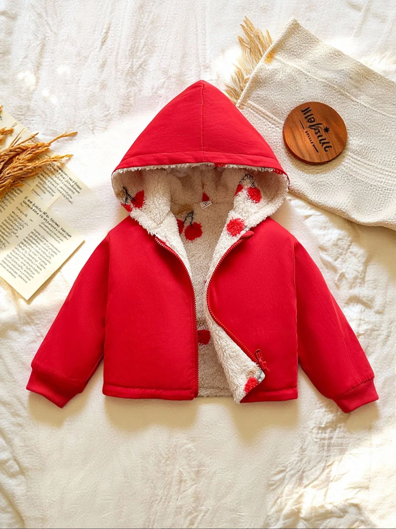 Make winter fun and comfortable with this adorable girls’ fleece hoodie coat. Designed for children aged 4 to 7, this coat combines warmth, softness, and style in one must-have piece. Perfect for chilly days, it keeps your little one cozy without compromising on fashion. The playful fruit and vegetable pattern adds a cute, cheerful touch that every child will love, making it ideal for both casual outings and everyday wear.