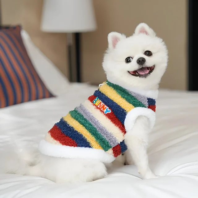 Cozy Rainbow Stripe Plush Pet Coat for Small Dogs & Cats