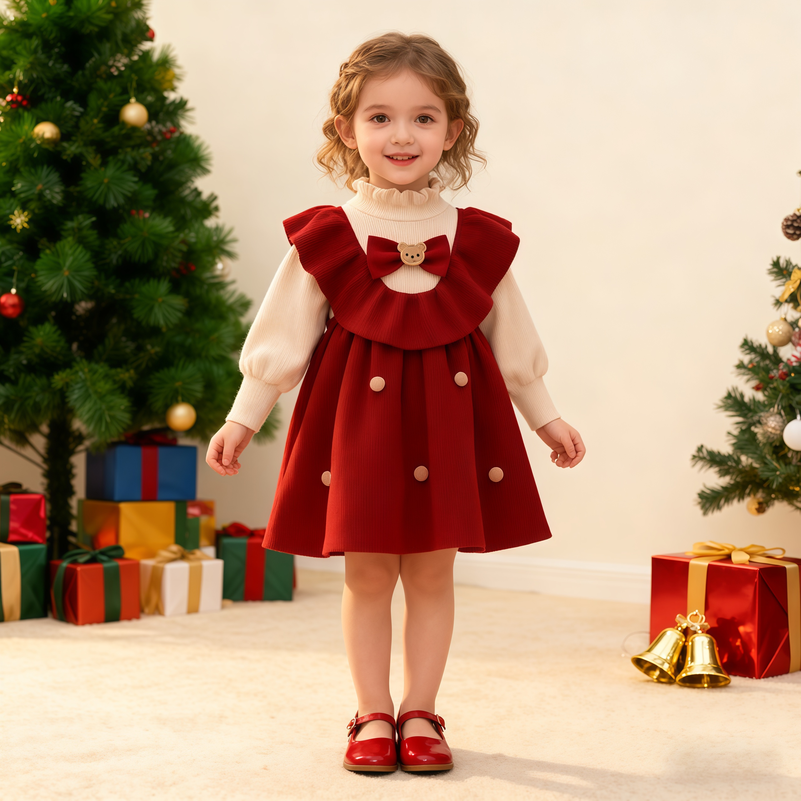 Let your little one shine with this autumn and winter knitted princess dress, designed to bring warmth, comfort, and elegance all in one. With its rich red color and sweet bow detail, this dress adds a classic, festive touch to your child’s wardrobe while staying soft and cozy for everyday wear or special moments.
