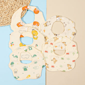 360° Soft Cotton Gauze Baby Bib – Waterproof Cartoon Feeding Bib for Toddlers