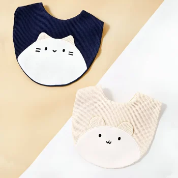 Cute Kitten & Teddy Bear Baby Bibs – 2-Pack Soft Cotton Feeding Towels