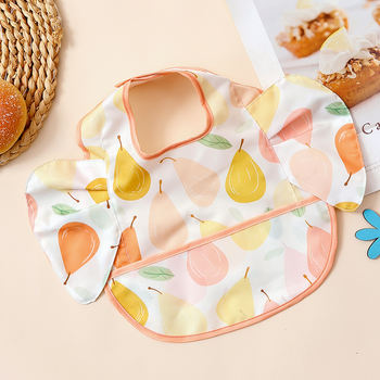 Waterproof Long Sleeve Baby Bib with Pocket – Fruit Print Feeding Smock