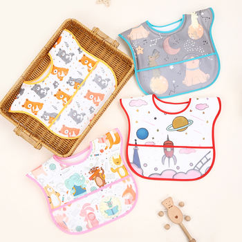 Waterproof Cartoon Baby Bib with Dining Shield and Velcro Fastener