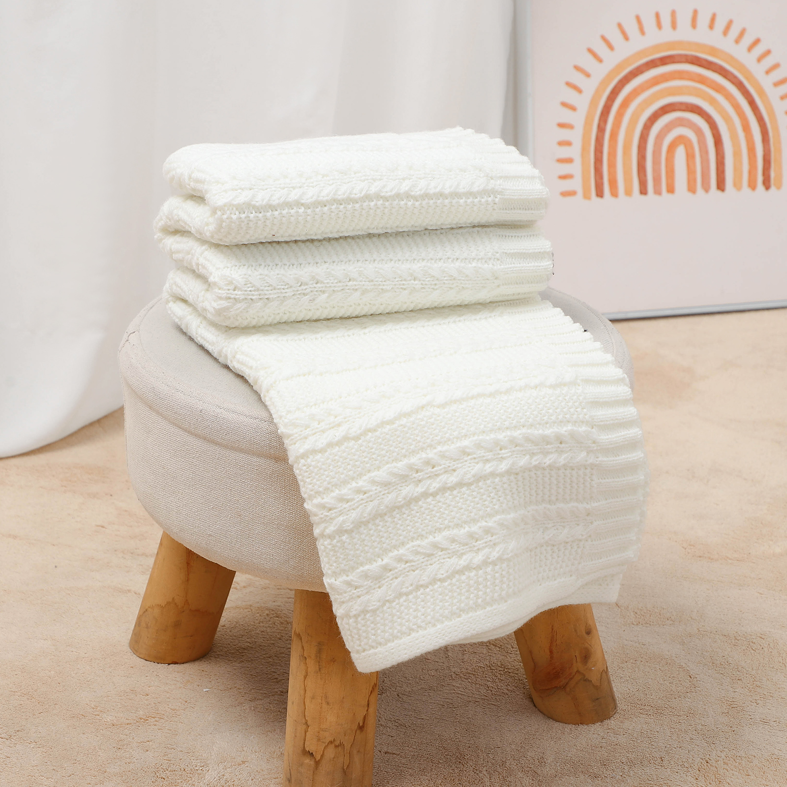Our Super Soft Baby Knit Blanket is the perfect gift for new parents and a must-have for every nursery. Its breathable design ensures your baby stays comfortable no matter the temperature. Use it as a swaddle for newborns, a stroller blanket for outings, or a crib wrap for nap time. The soft acrylic material makes it ideal for sensitive skin, and the stylish solid plaid pattern is versatile enough to match any nursery décor.