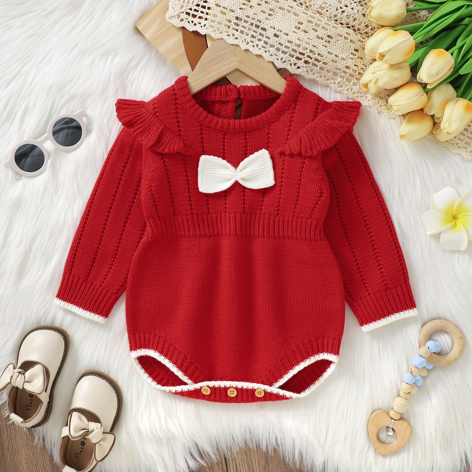 Wrap your little one in all-day comfort with this cozy knit baby bodysuit designed for newborns and infants up to 18 months. Made from soft acrylic yarn, this romper feels gentle on delicate skin while keeping your baby warm during cooler spring, fall, and winter days. Its classic solid color and long-sleeve design make it perfect for everyday wear, family outings, or sweet seasonal photos.