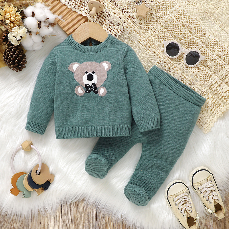 • 2-Piece Set: Includes a cute bear-patterned sweater and matching trousers.