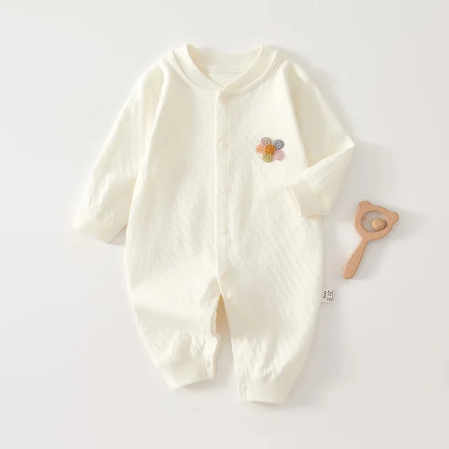 Getting your baby dressed shouldn’t be a struggle. This romper features a single-breasted front closure for quick outfit changes, saving you time during busy mornings or late-night diaper changes. The O-neck collar slides on smoothly without irritating your baby’s neck, while the long sleeves offer added warmth and protection.