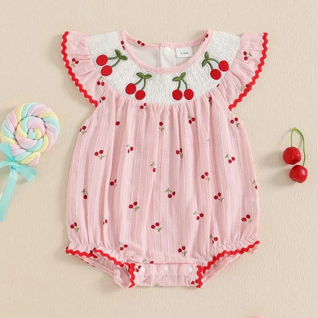 This romper is a must-have for any baby girl’s wardrobe. Whether for lounging at home, a day at the park, or a visit with relatives, this Baby Girl Romper with cherry embroidery is sure to keep her stylish and comfortable. The lightweight, breathable fabric is perfect for all seasons, ensuring your baby stays cool during the warmer months and cozy when it gets cooler. Let your baby shine in this fashionable romper that combines comfort and cuteness in one simple design!