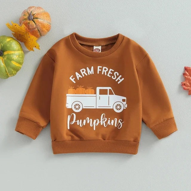 Baby Pumpkin Truck Print Hoodie – Long Sleeve Crew Neck Sweatshirt for Boys & Girls