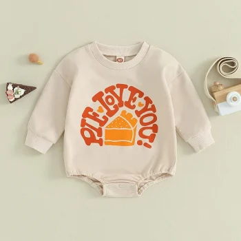 Baby Thanksgiving Long Sleeve Romper – Letter & Pie Print Outfit